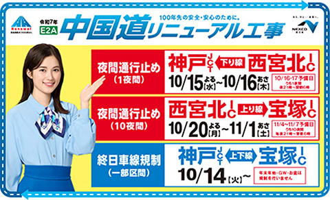 お知らせ すべて お知らせ 事業関連 健康経営 イベント 交通情報 2025年11月14日 New お知らせ 「点呼の違いをポイント解説!」リーフレットの作成 (全ト協) 2025年11月13日 New お知らせ 労働保険に入っていれば・・・(厚労省) 2025年11月13日 New お知らせ 『しごとより、いのち。』毎年11月は「過労死等防止啓発月間」です 。(厚労省) 2025年11月13日 New お知らせ サービスエリアで多発!!ドアパンチ注意(本四高速) 2025年11月13日 New お知らせ 阪神高速ご利用調査アンケート(12/26まで)抽選で400名にAmazonギフトカード5,000円分プレゼント 2025年10月30日 New お知らせ 高速道路の深夜割引見直しに向けたシステム整備の状況について(NEXCO西日本) 2025年10月27日 New イベント 大貨協連青年部会 企業見学会を開催いたしました 2025年10月23日 New お知らせ ドライバー専用レストラン臨時休業(夜食時間帯)のお知らせ(新日本海フェリー) 2025年10月17日 New 健康経営 【会員向け】aruku&(あるくと) 第11回大会の結果発表 2025年10月16日 New お知らせ 2025年度に90箇所がETC専用入口になります(首都高速) お知らせ一覧 大貨協連の事業 主な事業 ETCコーポレートカード WebKIT事業 フェリー事業 燃料共同購入事業 保険事業 販売斡旋事業 ETC2.0車載器 アルコールチェッカー ベルロック・ベルスリング ETCプリンター用ロールペーパー 紹介事業 デジタルタコグラフ ドライブレコーダー 電解水素水整水器 自動点呼機器 業務用血圧計・管理ソフト ロードサービス 飲料水自動販売機 事務服斡旋 車両買取紹介斡旋 トラックドライバー学習支援サービス 大貨協連について 概要 会長のご挨拶 会員情報 役員名簿 組織図 歩み SDGsへの取り組み 健康経営 記念誌 関連団体等 アクセス 大貨協連について一覧 お知らせ(交通情報) 2025年11月04日 New 交通情報 32号新神戸トンネル 出入口の通行止めについて 11/10~13、11/17~20、11/25~27(阪神高速) 2025年10月16日 New 交通情報 7号北神戸線 箕谷JCT・出入口の通行止めについて 2025年10月18日~12月1日 ※期間中 土日月連続全4回 土曜日AM4時~月曜日AM6時(阪神高速) 2025年09月24日 交通情報 令和7年度下半期 大規模な工事規制予定について(NEXCO西日本) 2025年09月24日 交通情報 万博関連行事等の開催に伴う交通規制の実施について 10/6(大阪府警察) 2025年09月22日 交通情報 E2A中国自動車道(吹田JCT~神戸JCT)のリニューアル工事 令和7年10月中旬からの交通規制日程のお知らせ(NEXCO西日本) 2025年09月19日 交通情報 E42 阪和自動車道 印南IC~南紀田辺IC(上下線)で夜間通行止め 10/20~25 (NEXCO西日本) 2025年09月19日 交通情報 E89第二京阪道路 第二京阪門真ICで夜間閉鎖および 一般国道1号バイパス(大阪北道路)(上下線)で夜間通行止め R6.10/14~R7.7/17 (NEXCO西日本) 2025年09月12日 交通情報 E27 舞鶴若狭道・E9 京都縦貫道・E9 山陰近畿道で通行止め 9/29~11/7(NEXCO西日本) 2025年09月09日 交通情報 舞鶴赤れんがハーフマラソン2025 交通規制内容【10月13日(月・祝)】(舞鶴市 ⽣涯学習部 スポーツ振興課) 2025年08月15日 交通情報 E28神戸淡路鳴門自動車道 鳴門北 IC 上り線 淡路島南 終日1車線規制 IC (土日祝含む)R.7 9/16~R.8 7/31(本四高速) 2025年08月14日 交通情報 しまなみ海道大島道路「大島北IC~大島南IC」 昼間全面通行止めのお知らせ(本四高速) 2025年08月12日 交通情報 住吉浜出口渋滞・事故多発、乗継のご案内(阪神高速道路) 2025年08月08日 交通情報 E1東名(豊田IC~名古屋IC)、E1名神(小牧IC~吹田IC)およびC2名二環(名古屋IC~上社JCT)などで集中工事(昼夜連続・車線規制、夜間車線規制、夜間通行止め、昼夜連続IC/JCT/SA/PA閉鎖、夜間IC/PA閉鎖)11/8~11/29(NEXCO中・西日本) 2025年04月28日 交通情報 E1A 新名神高速道路 高槻IC~茨木千提寺IC(上下線)で夜間通行止め(5/27、7月上旬、9月上旬、12月上旬)(NEXCO西日本) 2025年03月28日 交通情報 令和7年度 大規模な工事規制予定について(NEXCO西日本) 2025年03月07日 交通情報 31号神戸山手線 湊川JCT,神戸長田出入口 夜間通行止め工事 2025年3月実施分(阪神高速) 2025年02月25日 交通情報 中国自動車道(吹田JCT~神戸JCT)のリニューアル工事 中国池田IC入口終日車線規制及び終日一部レーン閉鎖についてお知らせ 1/27~4月上旬(NEXCO西日本) 2025年02月07日 交通情報 2025年度 高速道路における影響の大きい工事規制予定について(NEXCO東・中・西日本) 2024年12月20日 交通情報 中国自動車道(吹田JCT~神戸JCT)のリニューアル工事 令和7年1月からの交通規制の日程(NEXCO西日本) 2024年11月22日 交通情報 高速八重洲線の長期通行止めについて 2025年4月上旬~2035年度(首都高速) お知らせ一覧